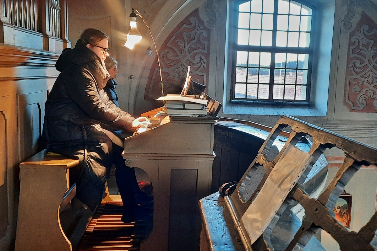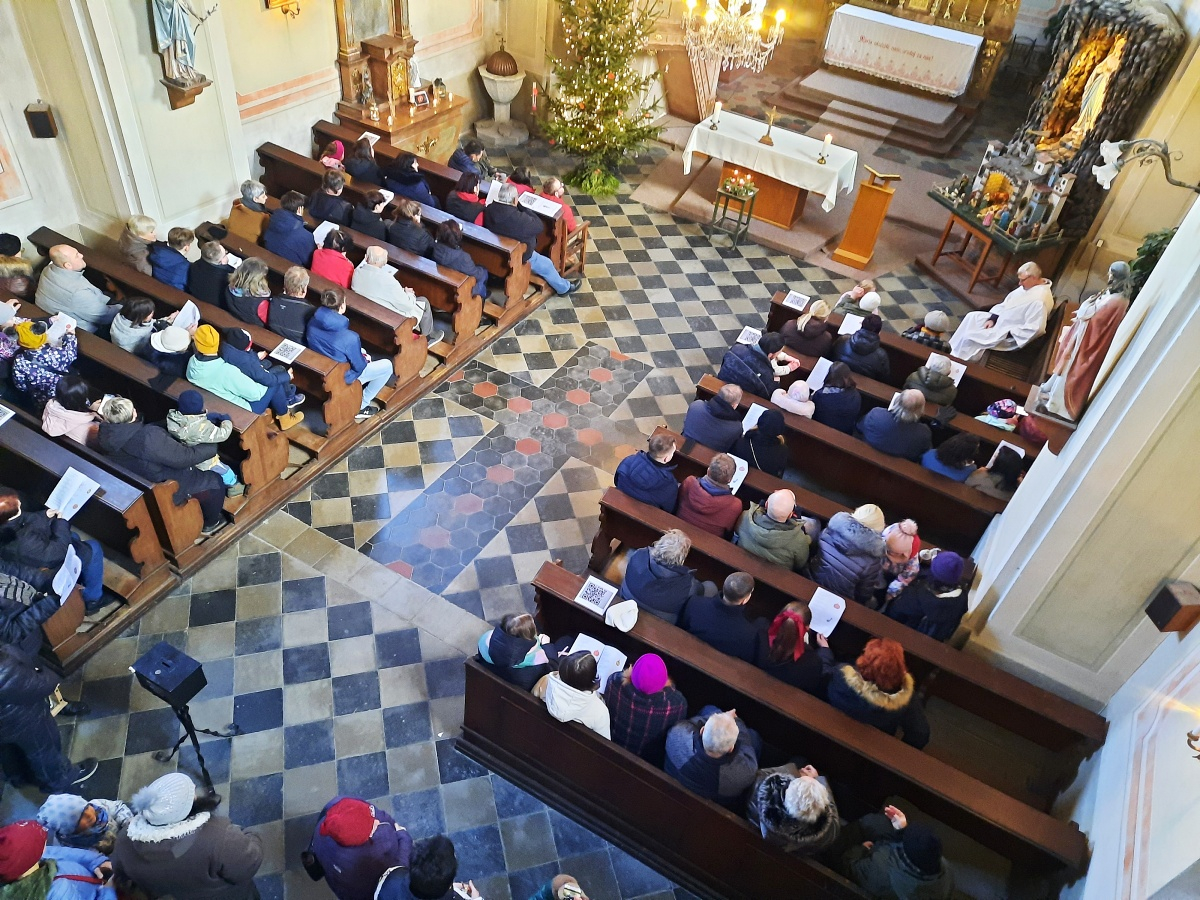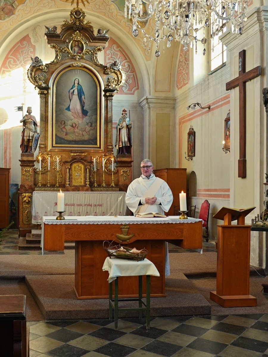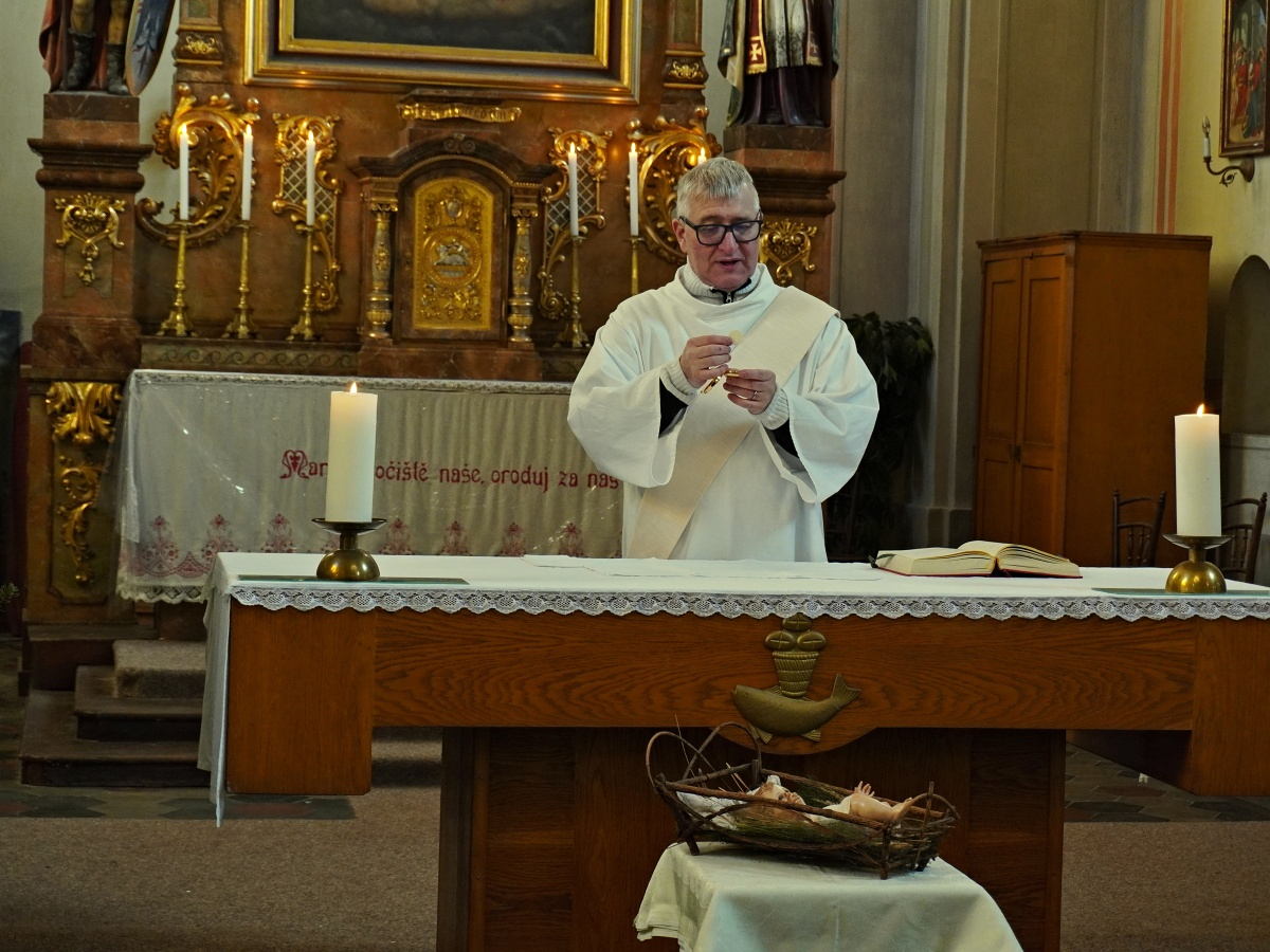 Náš jáhen René Paděra poprvé sám sloužil mši svatou Božího slova ve čtvrtek 25.12. v našem kostele Nanebevzetí Panny Marie. Pobožnost provázel rovněž zpěv a hudba naší varhanice Terezky.