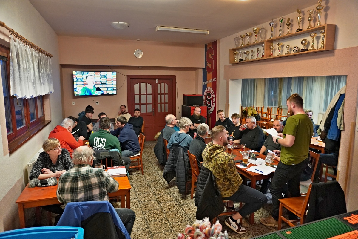 Schůze se konala v sobotu 7.2.2026 v Hostinci na hřišti. Po schválení programu předseda SK Daniel Hovorka poděkoval mimo jiné za práci pro fotbalový oddíl pí Pavlíně Hodboďové, které starosta obce předal kytici.