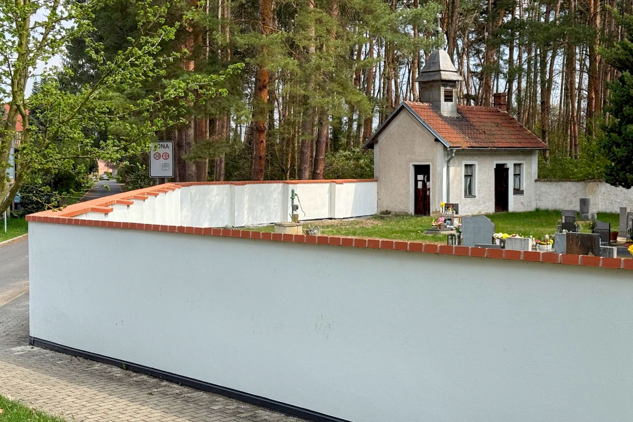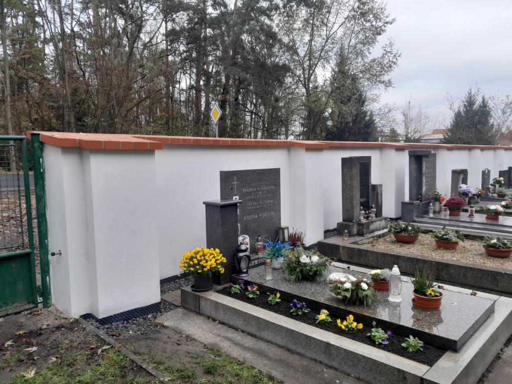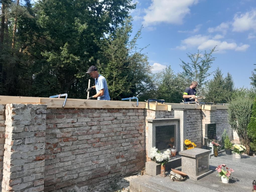 Oprava obecního hřbitova se zaměřila na nejvíce poškozenou přední část ohradní zdi. První etapa prací, probíhající podél pečecké silnice, byla dokončena na podzim roku 2024.